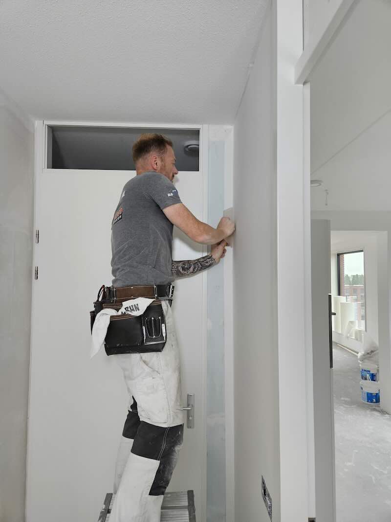 - Plakken van renovlies, voorgetexd 150gr renovlies.